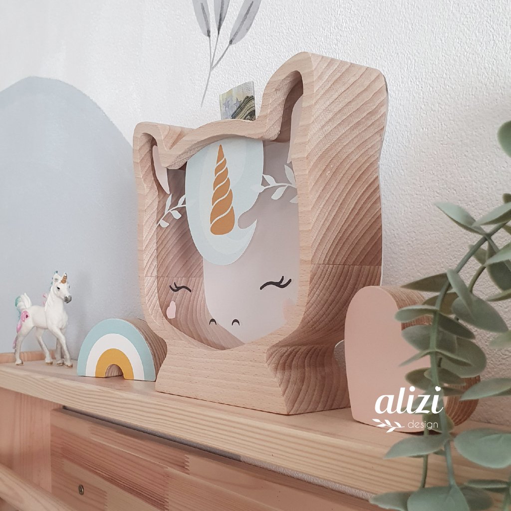 Jsem si jistá, že právě pokladnička je něco, co by v pokojíčku nemělo chybět. Jakmile děti pokladničku dostanou, zvedá se vlna otázek a je na vás, abyste jen odpovídali a ony budou se zapálením chodit s dalšímy otázkami. Bez pokadničky bývají pro děti peníze něco abstraktního a v podstatě si ani neuvědomují odkud se berou, jak snadné je je utratit a jak může trvat, než je naspoří.